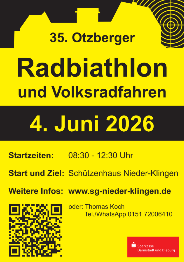 Die Otzberger Vereine richten an Fronleichnam (04.06.2026) wieder ihr Radbiathlon und Volksfahren aus. Mehr Info gibt es hier: www.sg-nieder-klingen.de