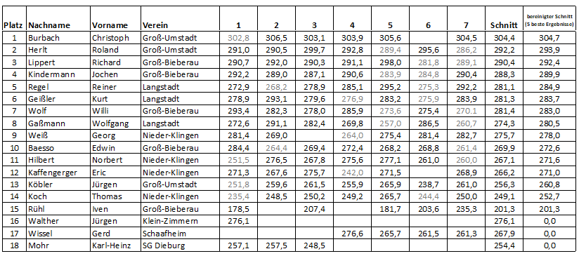 Bei der bezirksinternen Rangliste für Luftpistole Auflage wird an mehreren Terminen (typischerweise zwischen März und September) in unterschiedlichen Gastvereinen geschossen.